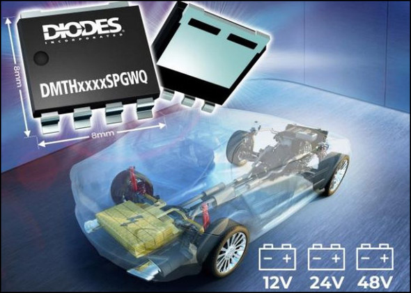 Diodesは、車載システム向け8×8mmガルウイングリードパッケージを採用した40V〜80V対応MOSFET製品群に100V MOSFETを追加した。48V BLDCモーター駆動用途に適し、高温環境でも安定動作する。