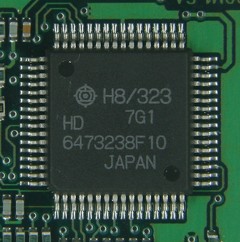 「H8」の外観 出所:Myself User:ZyMOS - CPU Grave Yard, my CPU collection, CC 表示-継承 4.0, https://commons.wikimedia.org/w/index.php?curid=7382041による1970年代、日立はまず「Z80」のラインセンスをZilogから受け、これをベースにZ80互換(というか、Second Source品)の生産を行い、次いでZ80をベースに改良した「HD64180」を1985年に発売している。HD64180はZ80とバイナリの後方互換性があり、さらにMMUやDMAコントローラーを内蔵、アドレス空間も512KB〜1MBに拡張されたほか、乗除算命令を搭載するなど、オリジナルのZ80よりだいぶ使いやすくなっていた。ただ厳密には命令実行に必要なサイクル数がZ80と異なっているので、命令サイクル数まで最適化したプログラムの中には一部動作がおかしくなることもあった。またバスサイクルも多少変更されており、これが理由でZ80の周辺チップをそのまま接続すると動作がおかしくなる場合もあった(ので、これに関しては元のZ80のバスサイクルに準拠させたHD64180Zが後で登場している)。とはいえ、このHD64180はかなりヒットした製品であり、逆にZilogにセカンドソース供給を行うなどしている(これを受けてZilogがさらに改良したのが「Z180」である)