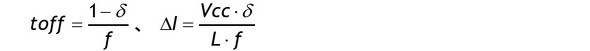 ΔIとΔIpは比例関係(ΔI/toff=ΔIp/tc)ですからΔIpは次の3式に置き換えられます。