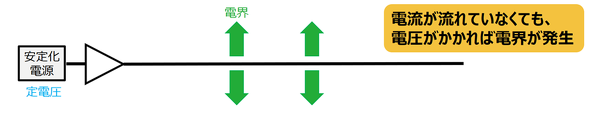 電界は、空間に電圧がかかると発生しますので、電気信号が伝搬される配線にも電界は発生します。